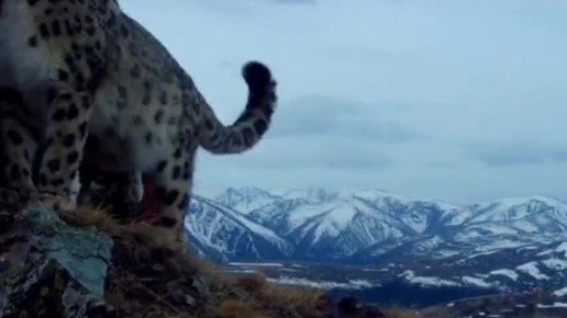 Снежный барс метит скалу. Маркировочное место ирбисов