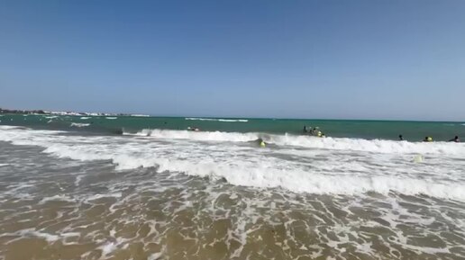 13 августа 2024 Пляж в Хаммамет💦 Море неспокойное. Вяжу даже в шторм 😄