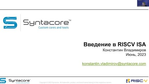 Открытая архитектура RISC-V Константин Владимиров @tilir Syntacore