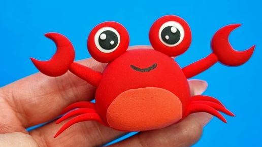 ✅️Как слепить краба из воздушного пластилина. 🦀 Морские обитатели.🌟Лепим крабика. #лепка #морскиеживотные
