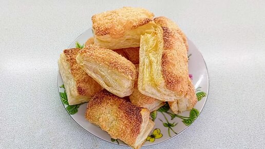 Язычки из быстрого бездрожжевого слоеного теста с сахаром. Самая быстрая выпечка.