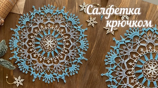 «ЗИМНЯЯ СКАЗКА». Салфетка крючком. Вяжем вместе.