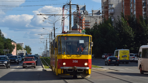 Трамвай Tatra T6B5SU-3156. Покатушки по Барнаулу. Звуки ТИСУ.