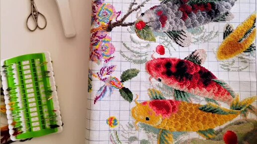 Вышивка D312 Flowers and fishes Цветы и карпы Кои/F199 Сияние весны в саду готовая работа