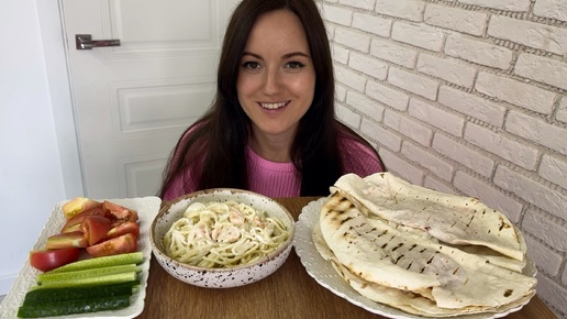 МУКБАНГ ПАСТА С КРЕВЕТКАМИ ЛЕПЕШКИ С НАЧИНКОЙ ОВОЩИ