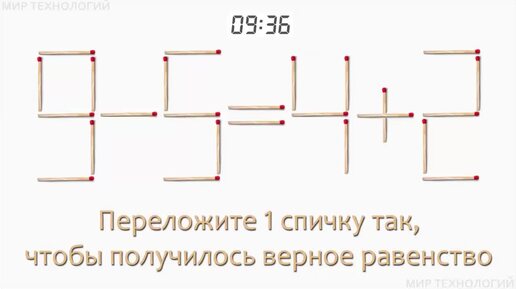 Задача 181. Переложите 1 спичку так, чтобы получилось верное равенство (9-5=4+2)