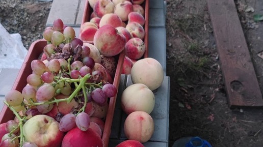 Наконец созрели персики, виноград, жёлтая слива и, конечно, помидоры!