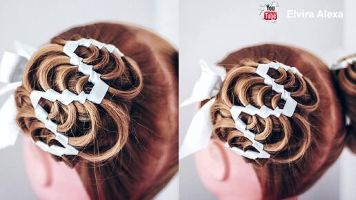 Причёска на последний звонок. Высокие пучки. Голливудская волна.
