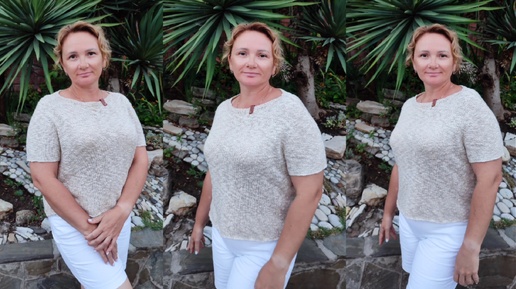 Описание джемпера с коротким рукавом, реглан-погоном из Yarnart LINEN SOFT