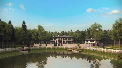 Проект дома с прудом 🏖️ Общая площадь 350 м² 🏠 Компактный двухэтажный дом в современном стиле