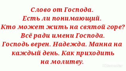 М.194)) Слово от Господа. Есть ли понимающий_ Кто может жить на горе Господней_ Ради имени Господа.