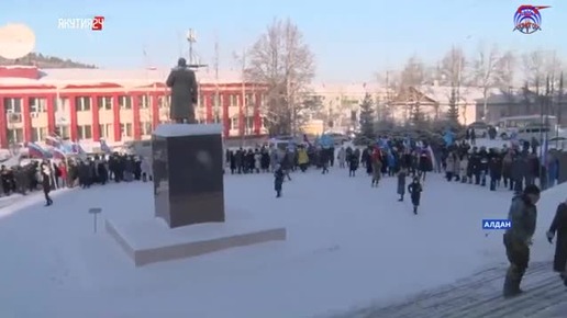 Митинг в поддержку спецоперации провели в Алдане.Также в его рамках состоялся флешмоб