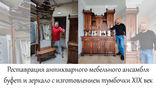 Реставрация антикварного мебельного ансамбля буфет и зеркало с изготовлением тумбочки 19 век