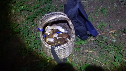 Белые грибы ночью собирает Старый Солдат. И видно - отлично, и лосиная муха не докучает.15.08.2024. Смоленская область