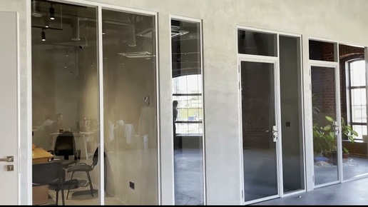 Остекление офисного пространства перегородками из закаленного стекла в белом каркасе