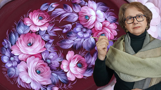 Жостово - Поднос Овальный. Выправка Роз на бордовом фоне. МАСЛО. | 16.08.2024 | Мастер-класс по живописи ДЕМО