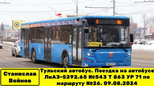 Тульский автобус. Поездка на автобусе ЛиАЗ-5292.65 №543 Т 863 УР 71 по маршруту №26. 09.08.2024