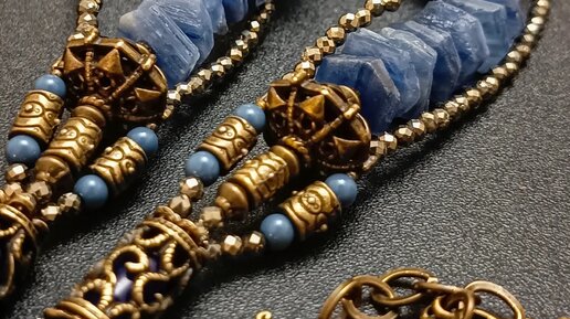 Украшение с кианитом и пиритом в бохо стиле. #бохо #кианит #ожерелье