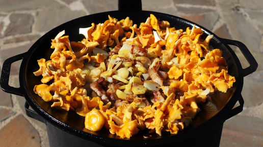 Деревенский омлет с лисичками на садже. Вкуснее уже не будет.