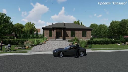 Презентация проекта одноэтажного дома площадью 130кв.м. с тремя спальнями и рабочим кабинетом