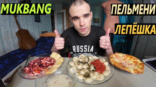 МУКБАНГ ПЕЛЬМЕНИ / ЛЕПЕШКА С ВЕТЧИНОЙ, СЫРОМ И БАЗИЛИКОМ / САЛАТ / ОБЖОР / EATING Mukbang ASMR АСМР