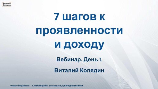7 шагов к проявленности и доходу. День 1. 2024.08.15. Виталий Колядин
