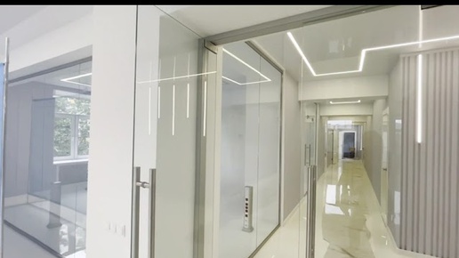 Перегородки и двери из прозрачного закаленного стекла в офисе государственного учреждения