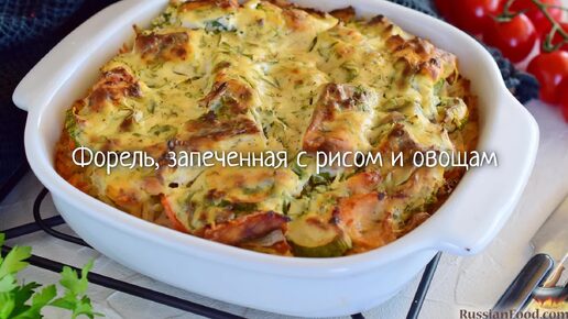 Форель, запеченная с рисом и овощам