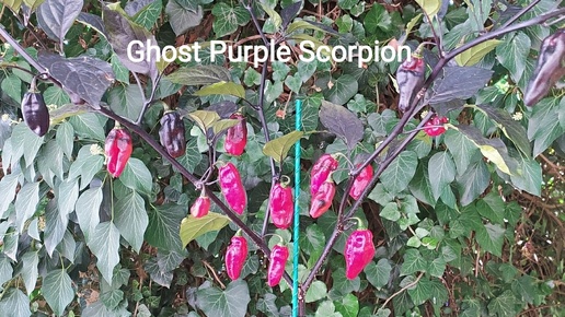 Ghost Purple Scorpion невероятно красивый острый перец, хиненс, фенотип с антоциановыми листьями, ветвями, Пурпурными перцами. Урожайный