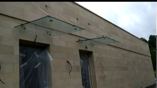 Стеклянные козырьки на вантах из каленого триплекса 8 x 8