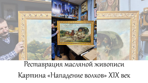 Реставрация масляной живописи. Картина «Нападение волков» XIX век