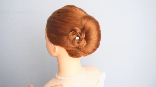 Французский пучок на свадьбу. Свадебная причёска для невесты. Элегантная прическа на длинные волосы. Торжественная причёска для женщины
