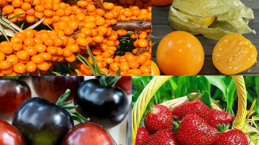 Сбор урожая продолжается. Лето еще не закончилось. Помидоры блю питс. Физалис земляничный. Клубника ремонтантная Монтерей. Облепиха