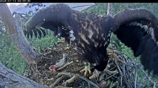 13.07.2024 Камычи. Мама тоже прилетела на центральную ветку. Дети защищают свою рыбу.