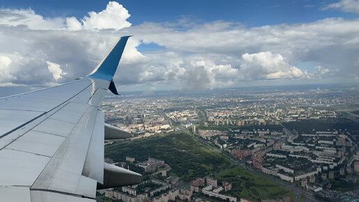 Взлет самолета в Пулково над Санкт-Петербургом