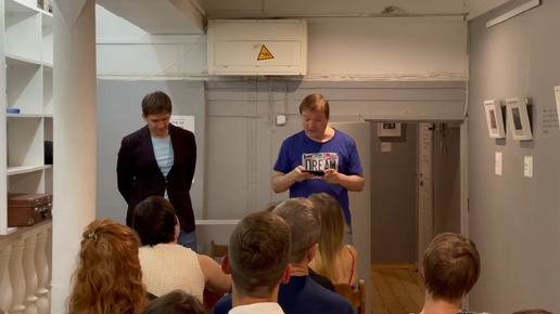 На презентации книги стихов Андрея Фамицкого. Вместе с Андреем читаем строки из будущей книги