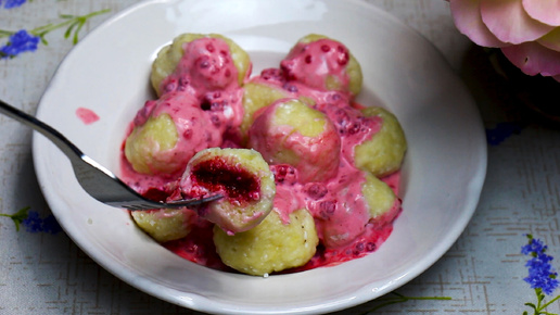 Дети обожают на завтрак, обед, ужин. Ленивые вареники с малиной внутри.
