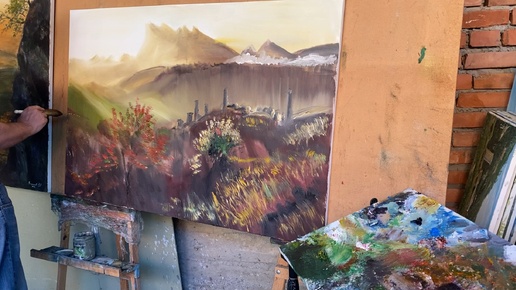 Подмалевок. Гора Цей-Лоам Ингушетия маслом на холсте 80 на 120 см. Зилавди Яшуркаев.