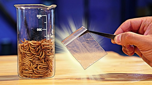 Эксперимент с личинками и целлофаном. За какое время личинки съедят пакет. Личинки vs. мясо, яблоко