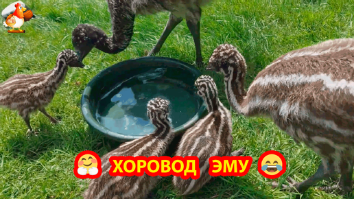 Хоровод Эму у тазика с водой 😂 Страусята разных возрастов играют во дворе ❣️🤗🥰