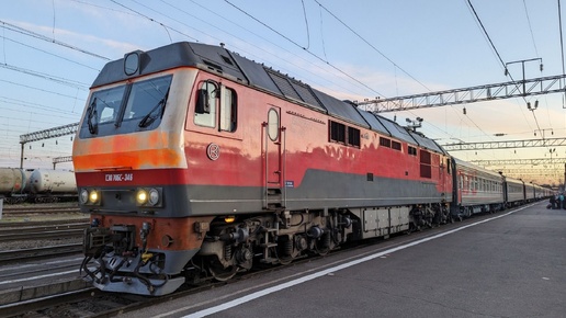 Тепловоз ТЭП70БС-346 отправляется с поездом до Питера