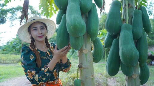 Свежая папайя в деревне и рецепт салата из папайи 🍈 | Деревенская жизнь