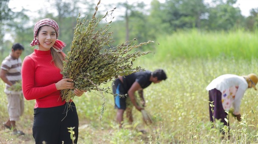 Собираем семена кунжута в деревне с семьей 🌾 | Деревенская жизнь
