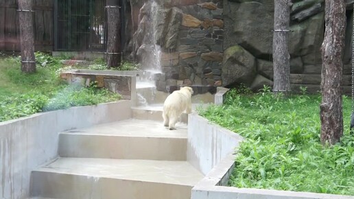 Медвежата Белка и Стрелка радуются чистой водичке, красивому водопаду и становятся все смелее.