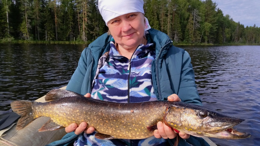 Любимая женщина ловит щук-ночевка с женой на лесном озере-август 2023