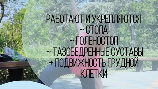 Работают и укрепляются стопа, голеностоп, тазобедренные суставы + подвижность грудной клетки