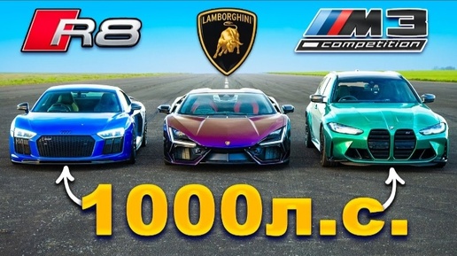 Кто победит в заезде: Lamborghini Revuelto 1000 л.с или M3 Touring 1000 л.с или же R8 1000 л.с?