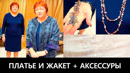 063 Синее платье и жакет с кружевами и мехом. Дополняем комплект одежды аксессуарами.
