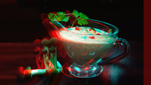 3D stereo red-cyan Грибной соус из опят сливочно-чесночный