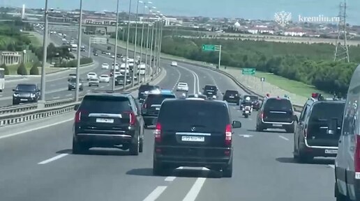 Кортеж Владимира Путина направляется в резиденцию Президента Азербайджана "Загульба"